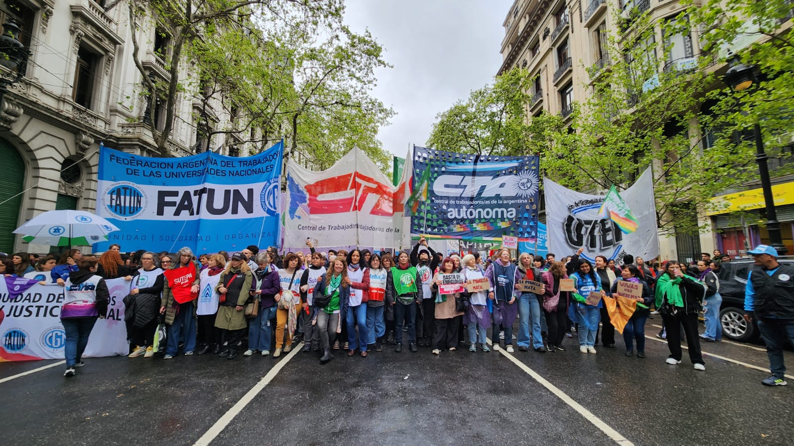 Con la consigna No hay víctimas buenas ni malas. Ninguna vida es descartable. Basta de femicidos, el Bloque Sindical Feminista, integrado por las CTA, CGT y UTEP, y otras organizaciones de mujeres y diversidades marcharon de Plaza de Mayo a Congreso en reclamo de Justicia para Brenda, Morena y Lara y en repudio de las políticas de retroceso, ajuste y violencia del gobierno de Javier Milei.