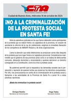 ¡NO A LA CRIMINALIZACIÓN DE LA PROTESTA SOCIAL EN SANTA FE!