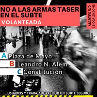 En el marco de la campaña que la AGTSyP, junto a centrales sindicales, sindicatos, organismos de Derechos Humanos, Centros de estudiantes y organizaciones politicas lleva adelante en rechazo al intento del Gobierno de la Ciudad de utilizar pistolas electricas TASER en el ámbito del Subte, el dia MARTES 5 DE FEBRERO ENTRE LAS 18 Y LAS 20HS se realizara una jornada de difusion al publico usuario en diversas estaciones de la red.