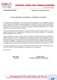 CUT Brasil - Solidaridad con los trabajadores y las trabajadoras de la Argentina