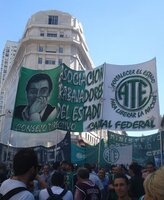 Acá estamos con los compañeros docentes, los compañeros de UTE, de SUTEBA y de CTERA. El 4 de abril van a hacer un paro nacional con una movilización, y ahí vamos a estar los estatales acompañando a nuestros hermanos estatales docentes. Y no es cualquier día, ese día se conmemora el asesinato del compañero Carlos Fuentealba, por eso tenemos que estar masivamente para abrazar a la familia del compañero y repudiar a los responsables políticos del asesinato de Fuentealba. Y se eligió ese día en el Ministerio de Educación no casualmente para marchar, porque acá lo veíamos al compañero de la Federación de Estudiantes Secundarios, que abrazan a los estatales porque ellos están denunciando el vaciamiento de las políticas educativas. Están denunciando justamente lo que está haciendo este Gobierno, que es achicar el Estado, sacarnos derechos, vaciarnos, descentralizar absolutamente todo. Por eso es importante que asumamos el compromiso y que este 4 de abril, estatales de la administración pública, de la salud, todos juntos con los docentes, unidos con un solo puño para frenar esta barbaridad de ajuste que están llevando adelante.