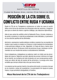 Posición de la CTA sobre el conflicto entre Rusia y Ucrania