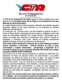 Repudio de la CTA Chubut a la represión contra las comunidades mapuches y tehuelches