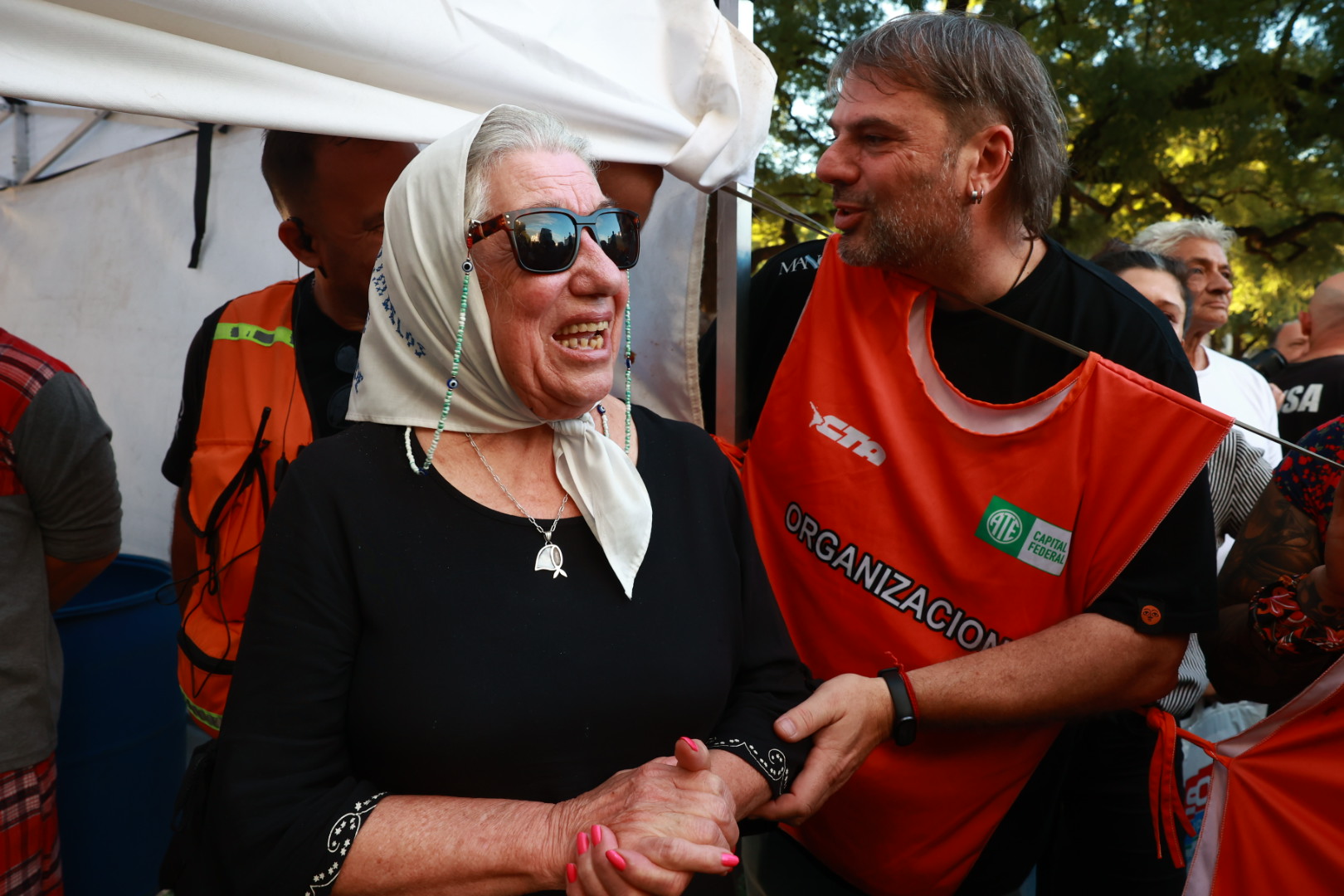 Así se expresaba Daniel Catalano, secretario general ATE Capital: "En unas horas Pablo Grillo y luego de un año de tratamiento y de pelear por su vida, Pablo va a tener un alta provisoria. Grillo es una víctima más de la violencia institucional del gobierno de Javier Milei. Hoy estamos en la calle junto a su familia, a sus amigos, a los jubilados y jubiladas, reclamando por justicia, para que los autores materiales y políticos, sean condenados"