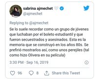 “Se lo suele recordar como un grupo de jóvenes que luchaban por el boleto estudiantil y que fueron secuestrados y asesinados. Esta es la memoria que se construyó en los años 80s. Se prefirió mostrarlos así, como unos perejiles (tal como hizo Olivera en su película)”, continuó.