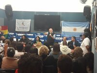 Finalmente, Baradel agregó: “Todos tenemos el mismo derecho y deberíamos recordárselo a los dirigentes políticos y a las fuerzas de seguridad, el bienestar y la libertad no son solamente para los argentinos, sino, como lo dice el preámbulo de la Constitución Nacional “para todos los hombres del mundo que quieran habitar el suelo argentino”. Habría que modificar esa parte, para que diga: “hombres y mujeres”. Ustedes tienen los mismos derechos que cada uno de nosotros que hemos nacido en esta tierra, porque lo marcan las leyes, la constitución y porque lo marca el pueblo argentino, más allá de los brotes de xenofobia”.