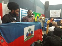 Luego tomaron la palabra varios representantes de comunidades migrantes que viven en nuestro país. Allí se escucharon intervenciones de hermanos y hermanas latinoamericanos. La más emotiva fue la de un compañero de Haití, que extendió una bandera de su país y con su acento francés señaló lo que dice el escudo: la unión hace la fuerza.