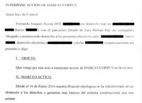 Y agrega: "sumado a que fuertes rumores que circulan y que han tomado cuerpo por estas horas, pedido de mi detención, recurrir con esta herramienta constitucional en resguardo de mi libertad ambulante".