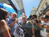 Para cerrar el acto, el secretario general del SiPreBA, Agustín Lecchi, subrayó que más temprano el secretario general adjunto del sindicato de Camioneros y líder de la CGT, Pablo Moyano, había dicho que el anuncio de Javier Milei aceleraba los tiempos para convocar a un paro general y que lo volvería a discutir la CGT con las CTA. “Creemos que el movimiento obrero organizado, con el enorme paro y la movilización del 24 de enero, con cada acción de lucha es el que le viene poniendo un freno al DNU, primero, con la reforma laboral, a la Ley Ómnibus y le van a poner un freno también al intento de cierre de la agencia nacional de noticias y publicidad Télam y a todas las barbaridades que anunció el presidente Milei el viernes por la noche".