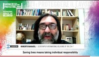 Entre las voces que allí se escuchan está la del Secretario de Relaciones Internacionales de la CTA-T, Roberto Baradel, quien convocó al ejercicio de la responsabilidad individual, social y colectiva para llevar adelante las acciones necesarias para enfrentar la pandemia: "Tener un estado presente que refuerce los sistemas de salud y vaya en auxilio de los ciudadanos que no tienen condiciones materiales para poder enfrentar esta pandemia".