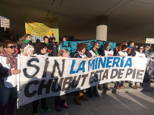 “Nos estábamos acordando con algunos compañeros, el 7 de septiembre del 2002 nosotros en Esquel con un grupo de vecinos realizamos una asamblea informativa donde el título era ’El manejo de los recursos naturales en la provincia de Chubut’. Allá podíamos manifestar y visibilizar con la participación de diferentes organizaciones ambientales de la provincia, de pueblos originarios, de trabajadores, de vecinos movilizados de qué manera en aquellos años el Estado era también un Estado ausente que no podía controlar absolutamente nada y la verdad es que allí fue surgiendo con la cuestión informativa, el análisis más profundo en la comunidad. Y allí, en ese mismo día, que van a ser ahora 16 años, se parió y empezamos a construir la frase ’Vienen por el oro, vienen por todo’”.