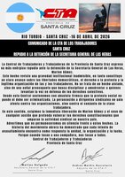 SANTA CRUZ - REPUDIO A LA DETENCIÓN DE LA SECRETARIA GENERAL