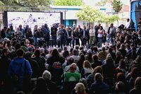 Otra presencia que acompañó el acto fue la del gobernador de la Provincia de Buenos Aires, Axel Kicillof, que, luego de la proyección de un video alusivo, agregó: “Primero quiero hacer un comentario sobre el video que vimos por lo que nos costó como sociedad, como pueblo, llegar a un momento así donde de nuevo nos podamos reencontrar, reunirnos, discutir, vernos la cara, sentir el calor de compañeros y compañeras después de la pandemia. Tal vez por eso y por lo gigantesco que es lo que ocurrió hace 16 años en Mar del Plata, donde Latinoamérica, la Patria Grande se paró, se puso de pie y le dijo a las principales potencias: “eso es tuyo pero esto es nuestro”. Tal vez por eso sea tan emocionante poder compartir esas imágenes”.