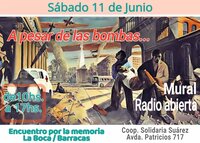 👉La convocatoria es el sábado 11 de junio, entre las 10 y las 17, en la puerta de la Cooperativa de Vivienda Solidaria Suárez (Av. Patricios 717) donde pintaremos un mural con estudiantes y docentes de la escuela de Bellas Artes Manuel Belgrano y el Colectivo Carpani; haremos una radio abierta de la que participarán los periodistas Juan José "Pájaro" Salinas y Enrique Arrosagaray, el historiador Gogo Morete, el piloto y escritor Alejandro Covello e investigadorxs del Archivo Nacional de la Memoria. También estamparemos afiches, remeras, telas, en serigrafía con el aporte del grabador Rubén Sassano, y reflexionaremos junto con les vecines de los barrios de La Boca y Barracas en torno a esos sangrientos sucesos.
