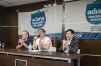 "Es un orgullo representarlos y hablar en nombre de ustedes. Espero estar a la altura", agregó Petraglia, que continuó detallando el proyecto solidario que representa ADUNA, en línea con la defensa de los derechos de las y los trabajadores de la Educación Universitaria -Convenio Colectivo, paritarias, estabilidad laboral, fin de la precarización, entre otros-, al tiempo que ratificó el compromiso con el fortalecimiento de la CONADU.