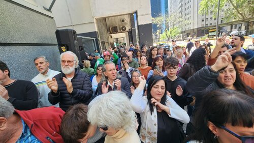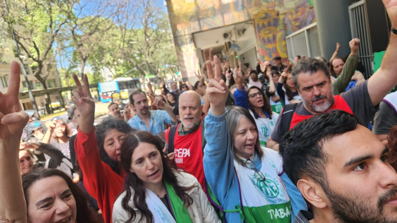 Santiago Ponce agradeció la iniciativa y manifestó: “ Gracias compañerxs por bancarnos en este momento tan difícil que estamos viviendo los trabajadores de esta casa, momento de persecución, desguace, de despidos”. Y se refirió también a la persecución contra Cristina Fernández de Kirchner.