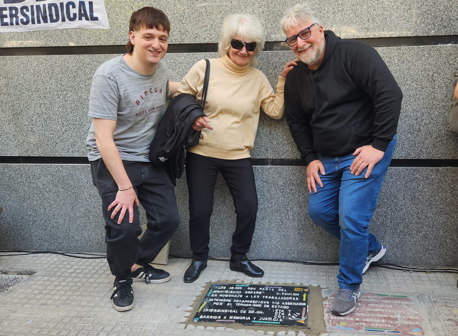 La Baldosa por la Memoria, que lleva la firma de las tres centrales que integran la Intersindical de DDHH, y de Barrios x Memoria y Justicia, tiene una frase de nuestro compañero Victorio Paulon, histórico dirigente sindical metalúrgico de la UOM de Villa Constitución, quien fuera Secretario de Derechos Humanos de la CTA-T: "Lxs 30.000 son parte del movimiento obrero".
