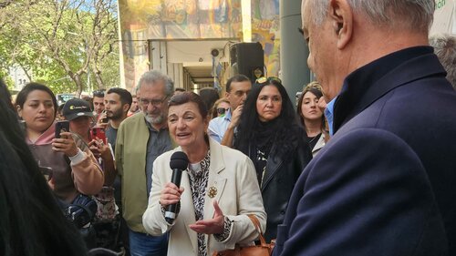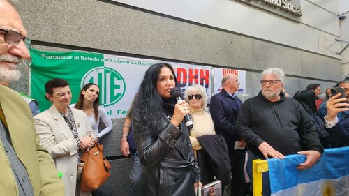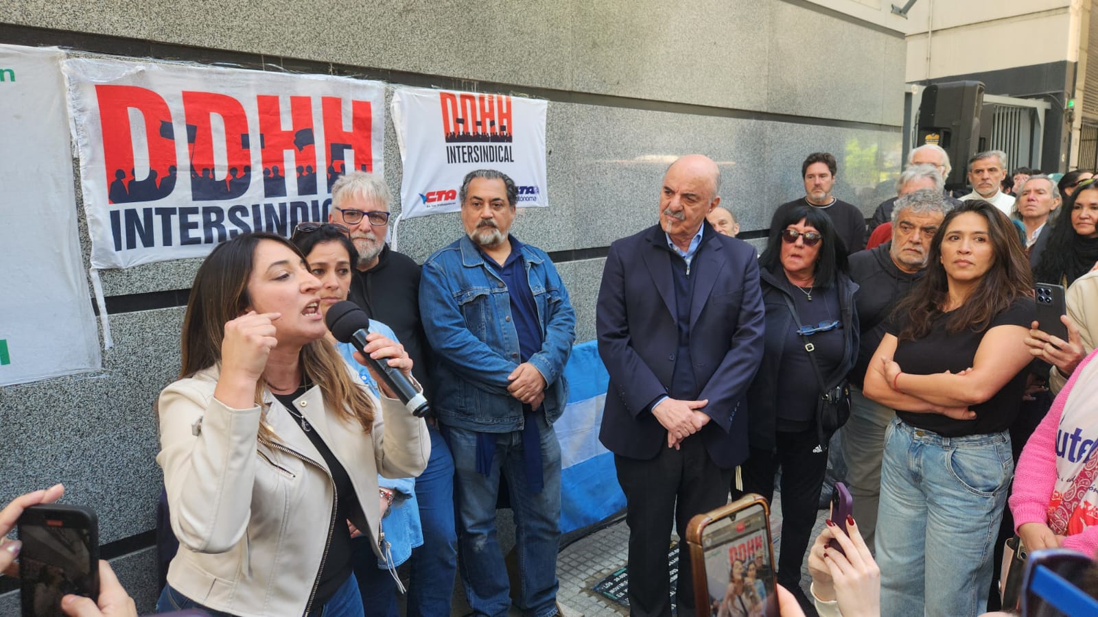 Mientras Agustina Panissa hablaba, el secretario general adjunto de la CTA-T y titular de ATE Capital, Daniel Catalano, se encontraba adentro del Ministerio de Trabajo donde el Gobierno nacional, a través de la ministra Sandra Pettovello, decidió abrir un sumario policial contra nuestro compañero Catalano, y señaló en un comunicado a otrxs referentes, entre ellxs a la compañera Panissa, por haber colocado una baldosa en homenaje a las y los detenidos desaparecidos.
