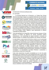 La Corriente Nacional por la Producción y el Trabajo Gral. Enrique Mosconi expresó su apoyo a la propuesta del gobernador Axel Kicillof de conformar una Multisectorial de la Provincia de Buenos Aires, con todos los sectores de conducción política, para conseguir la unidad de objetivos y de acción y para resistir y derrotar la andanada del gobierno nacional.