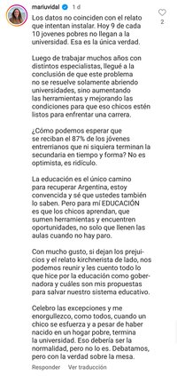 Con mucho gusto, si dejan los prejuicios y el relato kirchnerista de lado, nos podemos reunir y les cuento todo lo que hice por la educación como gobernadora y cuáles son mis propuestas para salvar nuestro sistema educativo.