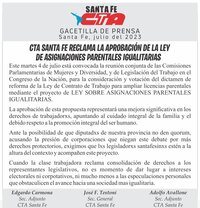 CTA Santa Fe reclama la aprobación de la Ley de Asignaciones Parentales Igualitarias