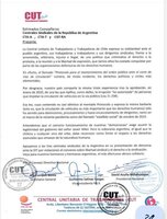 La Central Unitaria de Trabajadores y Trabajadoras de Chile expresa su solidaridad ante el pueblo argentino, sus trabajadoras y trabajadores y sus dirigentes sindicales, frente a la arremetida, arbitraria, injusta e ilegal, de una política que criminaliza el derecho a la protesta, a la reunión y a la libertad de expresión, que tantos años ha costado conquistar por parte de las organizaciones defensoras de los derechos humanos.