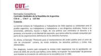 CUT Chile envió una carta de solidaridad a lxs trabajadorxs de Argentina