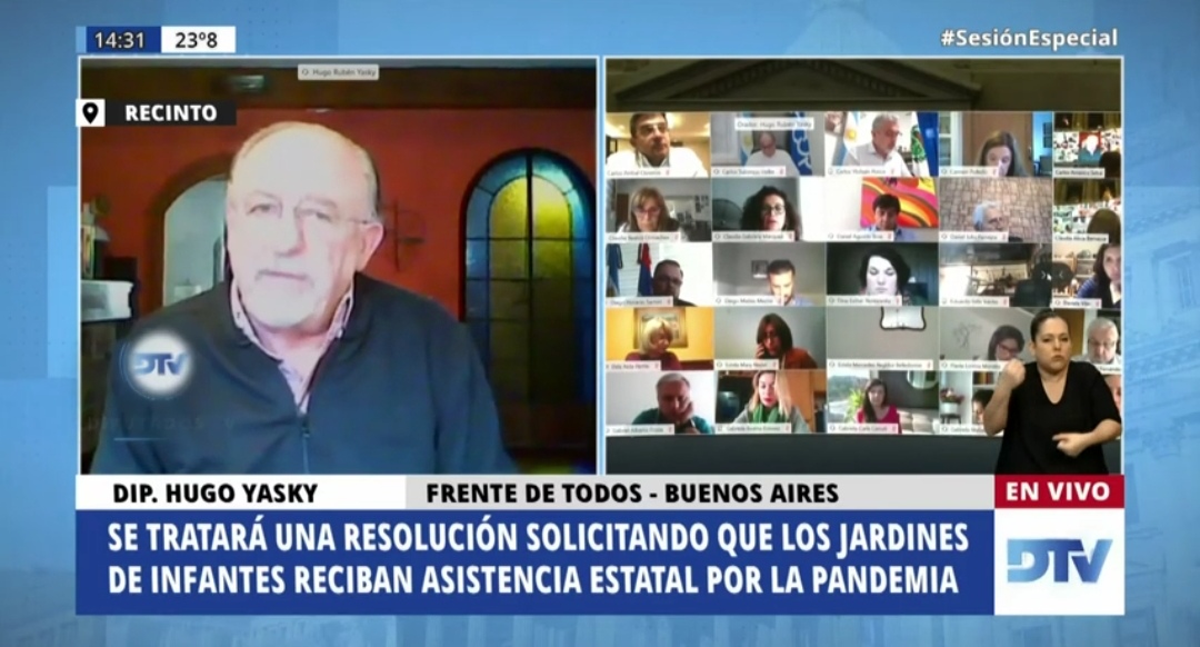 Luego de que el presidente de la Cámara de Diputados de la Nación, Sergio Massa, concediera la palabra al diputado Yasky, el dirigente docente, a través de la plataforma virtual Zoom en el contexto del ASPO, expresó: “Queremos rendir homenaje a Sandra y Rubén, docentes de la Escuela N°49 de Moreno, que cumpliendo con la tarea de todos los días que era preparar el desayuno para lxs chicxs de la escuela, terminaron perdiendo la vida. En circunstancias en las que evidentemente la ausencia del Estado, el achicamiento de los recursos presupuestarios, el abandono de las escuelas públicas, hicieron que lo que tendría que haber sido un acto cotidiano, rutinario, demostrativo de la entrega de los docentes con sus alumnos, terminara en una tragedia”.