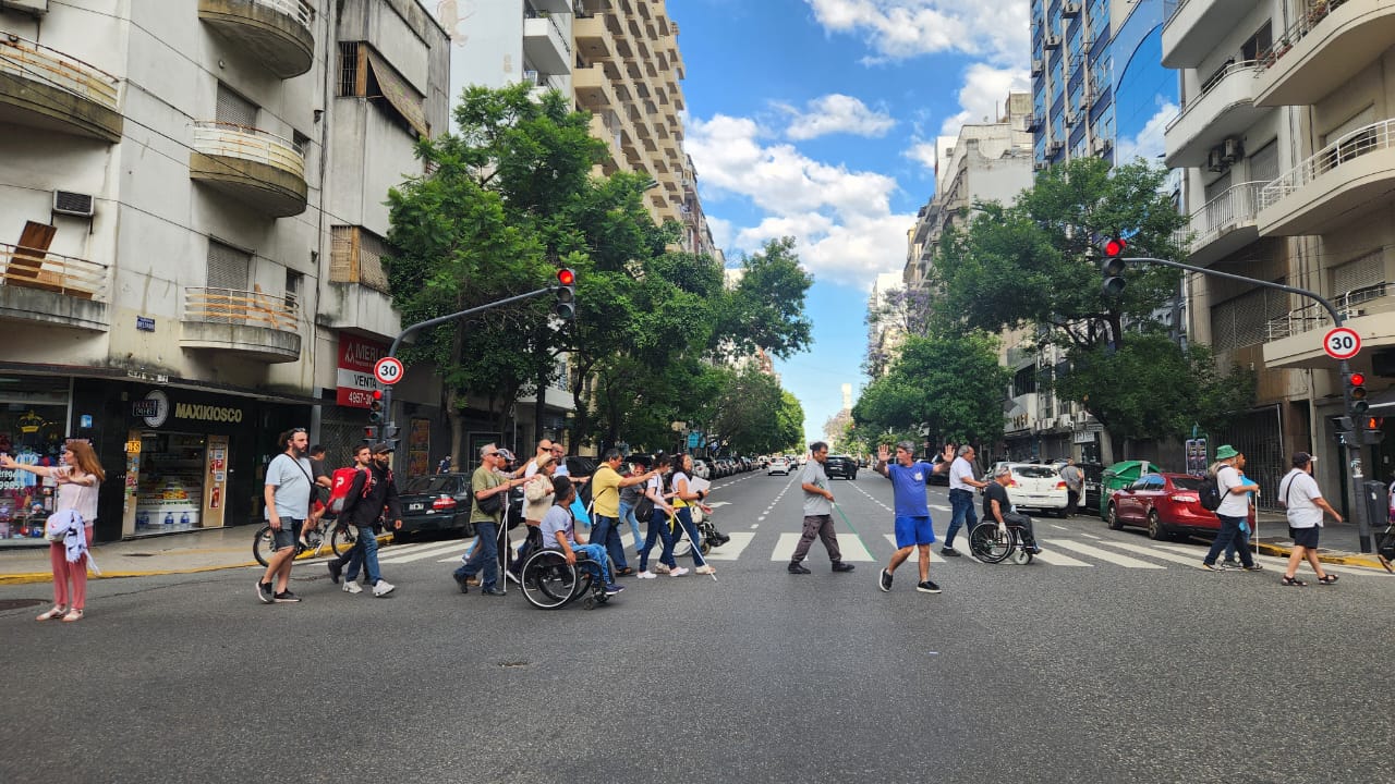 Luego de la manifestación frente a la ANDIS y de la radio abierta en la Plaza Mariano Moreno, las organizaciones de personas con discapacidad se movilizaron, para expresar su apoyo, hacia el domicilio de Cristina, en San José 1111, donde las dos veces presidenta de la Nación y titular del PJ Nacional se encuentra injustamente privada de su libertad.