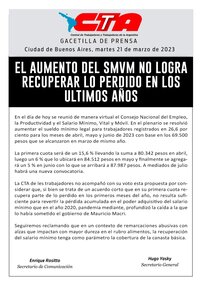 La CTA de les trabajadores no acompañó con su voto esta propuesta por considerar que, si bien se trata de un acuerdo corto que en su primera cuota recupera parte de lo perdido en los primeros meses del año, no resulta suficiente para revertir la pérdida acumulada en el poder adquisitivo del salario mínimo que en el año 2020, pandemia mediante, profundizó la caída a la que lo había sometido el gobierno de Mauricio Macri.