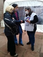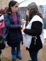 En una carpa blanca Marta habló con los y las visitantes. Otra vez una carpa blanca como representación de lucha, como contención de protesta. Otra vez una carpa blanca como espacio de resonancia del “nunca más”.