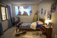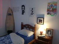 Cuatro paredes. Zapatillas tiradas, ropa desparramada sobre la cama de una plaza: remeras oscuras, roqueras. Sábanas y acolchado en la gama de los azules, de los celestes; funda blanca para la almohada. Fotos en cuadritos y sobre el velador, patineta, tabla de surf golpeada. Una tele de cola, una mesita con portalápices y los lápices sueltos, papeles, revista, perfume de 47 Street. Un dibujo de Rafiki, otro del gato Silvestre, y un tercero con la lengua de La 25. Atrapasueños colgando en la ventana. Varios, de colores. Y la reproducción de su imagen, que sonríe. La cara de Lucía inundándolo todo. Sus ojos negros, negrísimos; sus dientes blancos; blanquísimos; las rastas apretadas en una gomita.
