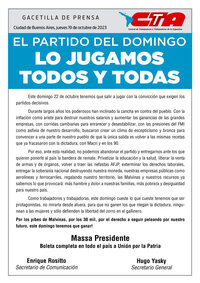 Por los pibes de Malvinas, por los 30 mil, por el derecho a seguir peleando por nuestro futuro, este domingo tenemos que ganar!