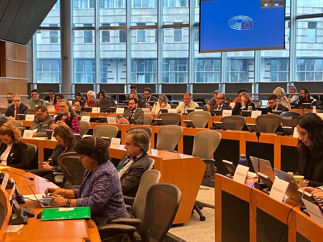 Participaron como panelistas, funcionarios de la Comisión Europea, Mounir Sataoui, presidenta de la Subcomisión de DDHH del PE, y representantes de la sociedad civil organizada como OXFAM y la Red Europea sobre Deuda y Desarrollo.