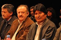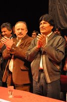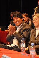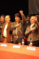 “A Evo lo conocimos en el año 2000 cuando un presidente que no hablaba bien el castellano gobernaba Bolivia y que quiso privatizar el agua, cuando la lucha ejemplar del pueblo boliviano, de los campesinos, pudo frenar lo que fue el intento de privatizar el agua. Ahí conocimos a Evo, luchando abajo, con sus hermanos. Y nos volvimos a ver con Evo en el 2005, en aquel acto hermoso en que salimos a la calle en Mar del Plata para decirlo no al ALCA” Volvimos a estar junto con Evo y con Hebe en Santa Cruz de la Sierra cuando fuimos ahí, al corazón de la rebelión de la oligarquía boliviana, a decirle a Evo estamos con vos y con el pueblo boliviano”.