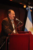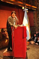 “Y esta posibilidad de tener a un luchador como Evo Morales que no aprendió lo que era la pobreza leyendo los libros, lo descubrió en las entrañas de la tierra, que es parte de la lucha milenaria. Que Evo Morales esté hoy acá, recibiendo el justo homenaje de la clase trabajadora argentina - porque estamos seguros que hoy mas allá de las siglas estamos hablando en nombre de todos. Estamos todos sumados a este reconocimiento”. Eso va diciendo Hugo. Y va soltando que, dos puntos: