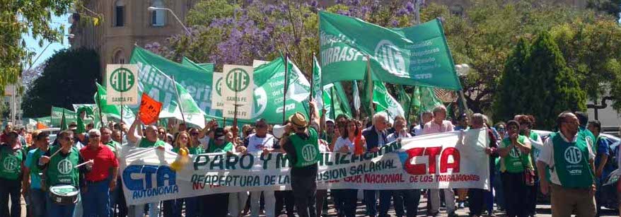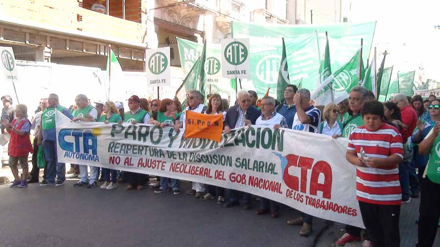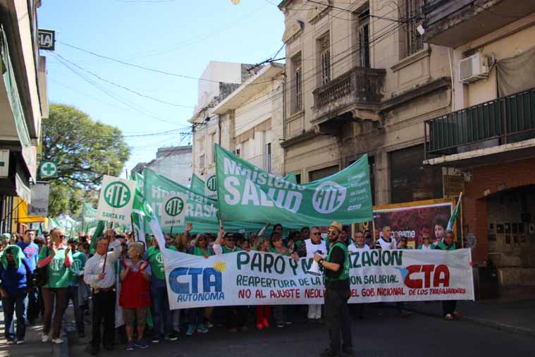 Este viernes 4 de noviembre, en el marco de la Jornada de Lucha Nacional dispuesta por las CTA de los Trabajadores y la Autónoma, se llevó a cabo un contundente paro y masiva movilización de la que participaron más de 5 mil santafesinos llegados de todos los puntos de la provincia.