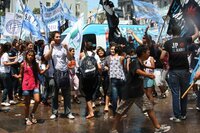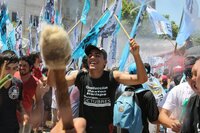En tanto una columna de militantes de organizaciones nucleadas en la Central, celebraron frente al Congreso de la Nación y en la Plaza de Mayo, la asunción de la Presidenta y disfrutaron de la fiesta popular, organizada en conmemoración al "Día internacional de los Derechos Humanos".