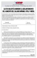 En el día de la fecha, nuestra Central solicitó al ministro de Trabajo, Dr. Claudio Moroni, que disponga el adelantamiento de las tres etapas acordadas oportunamente para hacer efectiva la totalidad del 45% de aumento del SMVM al 1° de julio del corriente año.