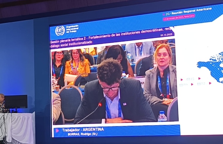 En el marco de la 20ª Reunión Regional de la OIT, el compañero Rodrigo Borrás, también referente de APA, en representación de las y los trabajadores de Argentina, realizó una exposición y denunció la profundización de políticas regresivas en materia laboral y el debilitamiento del diálogo social en Argentina.