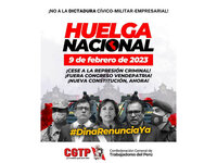 La Confederación General de Trabajadores del Perú (CGTP) convocó este jueves 9 a un paro general con una movilización en la capital, Lima. y otras ciudades. En ese sentido, la Central de Trabajadoras y Trabajadores de la Argentina envió una carta de solidaridad, en pos de la recuperación de la democracia y la paz en el país andino.