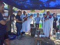 En el marco de la continuidad de acciones en reclamo por la reincorporación de lxs despedidxs, lxs trabajadorxs de la multinacional productora de gases industriales y oxígeno medicinal realizaron una misa y una olla popular en la planta de Pacheco.
