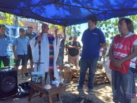 Durante la misa que brindaron los curas en opción por los pobres Jorge Marenco y el padre Tino, la compañera delegada de SPIQyP Gabriela Magueta sostenía la foto de un compañero, que minutos antes había estado apoyada en una mesita junto a una imagen del padre Carlos Mugica y un fragmento de su oración “Señor, sueño con morir por ellos, ayúdame a vivir para ellos”. “La fotografía es la de un compañero que tenía 30 años de antigüedad. A fin del año pasado se le detectó un tumor y falleció ayer. Era el compañero Silvio Menguini, que también fue miembro de la Comisión Interna”, relató Arecco.
