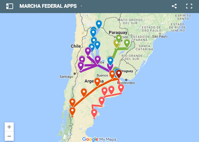 Sumate a la Marcha colabora con el mapa interactivo, a través de google maps podes indicar desde que región marchas a capital. Subir tus fotos, y videos.