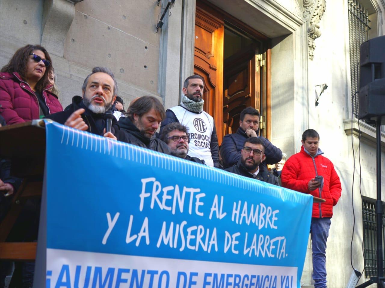 En tanto, el secretario general de UTE y gremial de la CTERA, Eduardo López, explicó: “La jurisdicción más rica del país con hambre en las escuelas, con jubilados que no pueden comprar sus medicamentos recetados por Pami porque no les alcanza la plata. Con desocupación, con gente en situación de calle, y el responsable absoluto en la Ciudad de Buenos Aires es Horacio Rodríguez Larreta, responsable también del acceso del macrismo a nivel nacional. Le reclamamos a Larreta que deje de esconderse debajo de las baldosas que rompe y arregla permanentemente, que se ponga el traje de gobierno, que para eso lo votaron, y que dé respuesta a los temas salariales, sanitarios y educativos en la Ciudad de Buenos Aires”.