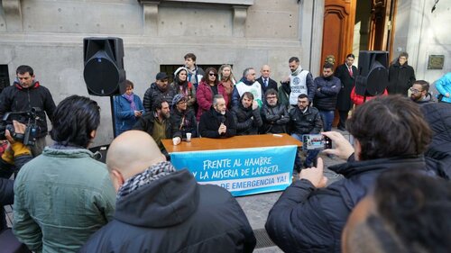 Distintas organizaciones sociales, barriales, de consumidores y gremiales y Pymes reclamaron hoy frente a la Legislatura de la Ciudad que se declare la emergencia sanitaria, alimentaria, tarifaria y salarial en la Ciudad de Buenos Aires.