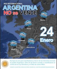 Europa se une para manifestarse a favor de los derechos de todo el pueblo argentino. Este 24 de enero sumate a manifestarte contra la ley Ómnibus y el DNU de Javier Milei.