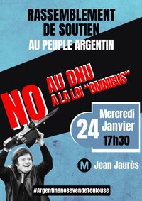 La FSM expresa su apoyo al próximo paro y movilización convocada el 24 de enero por las centrales sindicales argentinas (CGT, CTA Т У СТА А) y nuestros sindicatos afiliados para expresar su oposición a las medidas del gobierno ultraliberal y neofascista de Javier Milei.