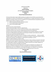 Apoyo a la HUELGA GENERAL con movilización a la Plaza del Congreso EN ARGENTINA. 18,30h Plaza del Ayuntamiento, Valencia