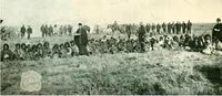 Imagen 1: “Mujeres y niños mapuche-tehuelche cautivos en el Puelmapu”. Foto tomada por Antonio Pozzo, fotógrafo que acompañó al General Roca en 1879 durante su campaña militar conocida como “Campaña del Desierto”. En el epígrafe de la foto se lee: “Choele-Choel – Adoctrinamiento de indígenas por el Reverendo Espinosa, quien luego fuera ascendido a Arzobispo”.